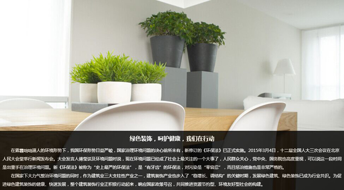 當PM2.5、霧霾、空氣質(zhì)量指數等詞語(yǔ)越來(lái)越多地成為城市人討論的話(huà)題時(shí),一批有責任、有擔當的建筑裝飾企業(yè)紛紛將“綠色裝飾”定為自己的長(cháng)遠發(fā)展目標。